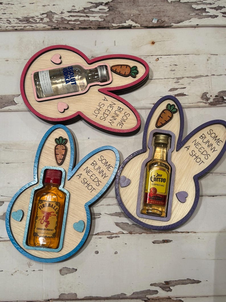 Make Easter extra fun with this Easter Bunny Alcohol Bottle Holder! Perfect for adult Easter gifts, this laser-cut mini liquor bottle holder is great for gifting, party favors, and Easter basket fillers.